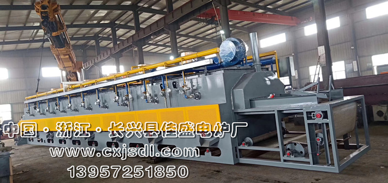 本生產(chǎn)線爐頭(淬火爐)采用氣電混合加熱,考慮到進料口產(chǎn)品連續(xù)式進入,需要吸收大量熱量,故進口采用燃氣加熱;中后區(qū)考慮到產(chǎn)品熱處理的穩(wěn)定性,故采用電加熱,此設(shè)計更節(jié)能,更穩(wěn)定。